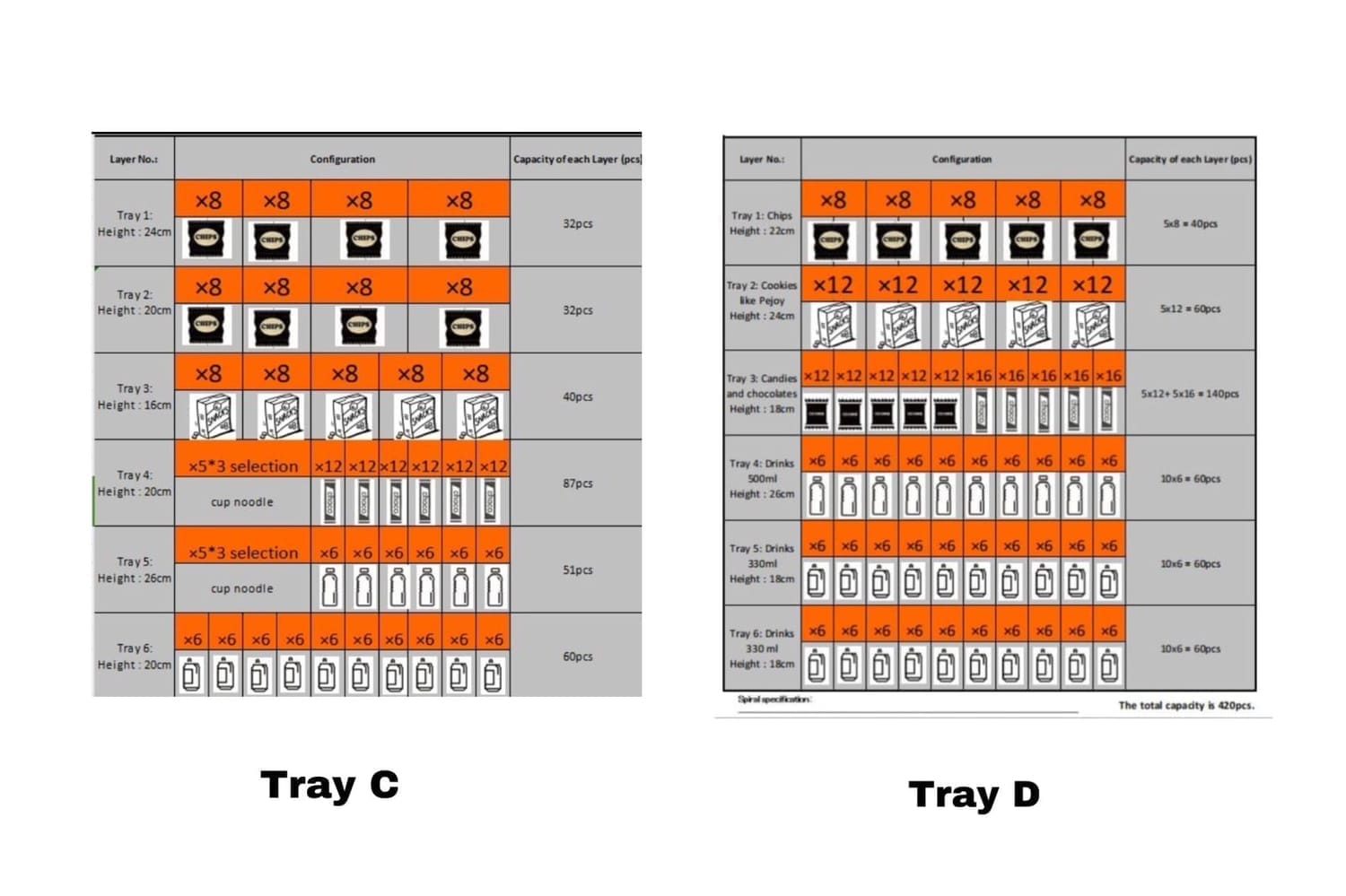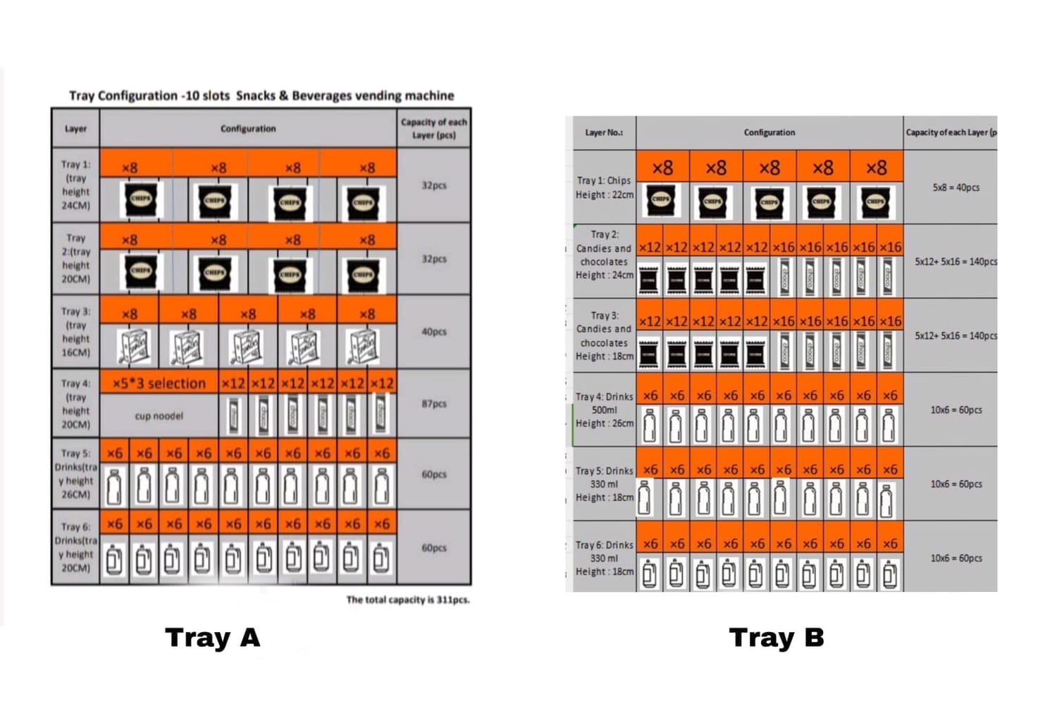 Our company can customize your tray configuration to fit the items you want to sell in your vending machine.